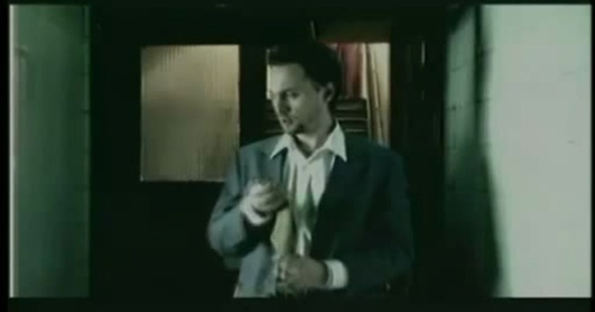 A man enters a disgusting public toilet and throws himself onto the flooded floor. He wipes his suit with water from the urinal then dives into a foul toilet cubicle. Plainly stinking of filthy odours he returns to his seat in a cinema, moving past the revolted audience who quickly leave him in his own personal movie theatre. Tantus Flat: Pasión DigitAll.