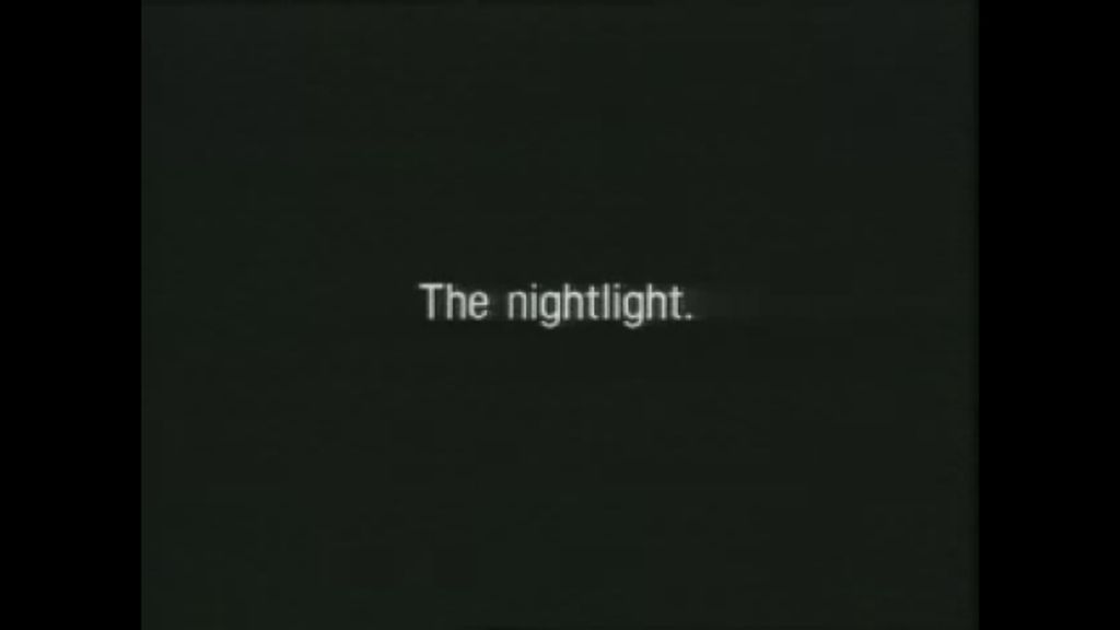 A title presents “The Nightlight” and we cut to a dreary black and white film.