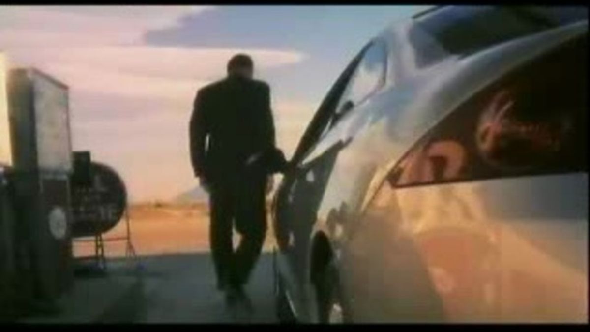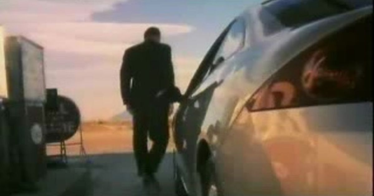 At a petrol station, amidst the Colorado desert, Dennis Hopper emerges from his Ford Cougar. He notices a parked Harley motorbike and instantly reminisces the days of "Easy Rider." Subsequently, a scene is played out involving a race between the younger Hopper on the Harley and the more refined Hopper in the Ford. Equally positioned, they exchange glances before the older Hopper accelerates away leaving the Harley behind as "Born to be Wild" is played.