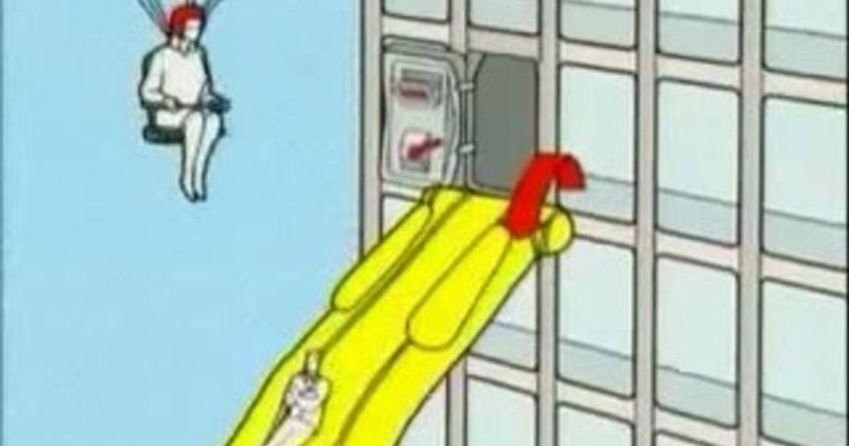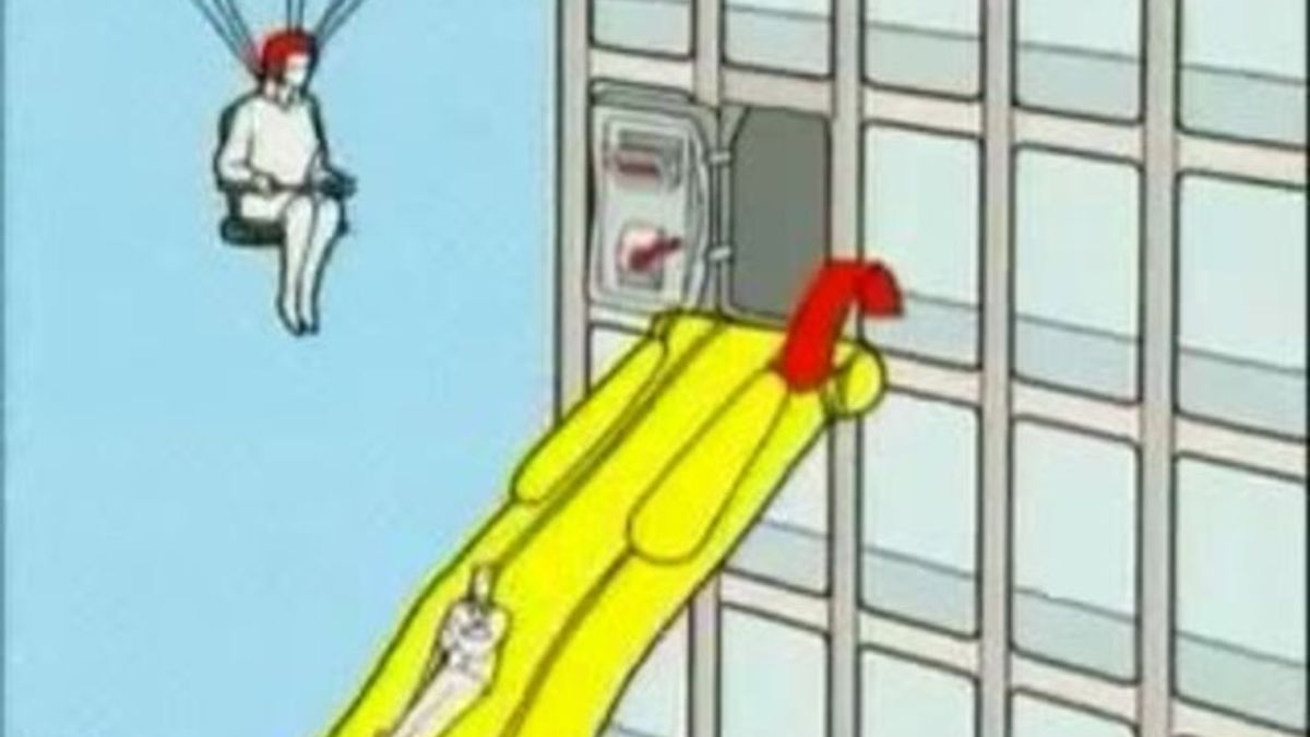 This advert animates the familiar illustrations seen on airplane safety cards. In particular, it uses