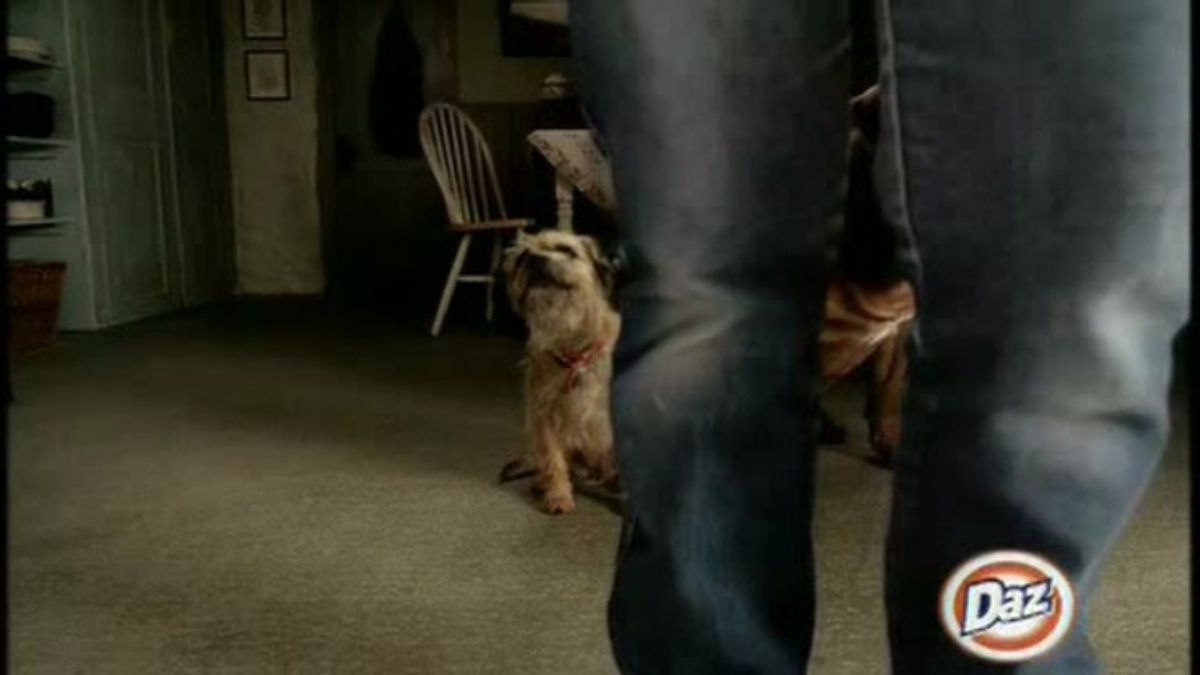 The three brief idents appropriately combine pets, television, and washing machines to humorously convey an impression familiar to avid soap fans. The two protagonists are pet dogs, who intensely stare at a spinning washing machine assuming it to be a television. Voice dubbing provides them with the characterstics defining Britain's TV culture. There are three variations.