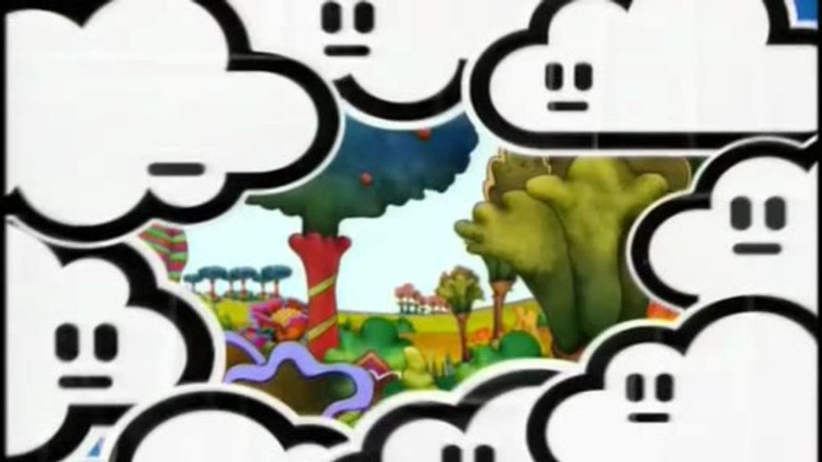 Animated Spanish spot for the Vueling airline. Friendly little clouds zoom all over a Sgt Pepper style landscape, past fish in lakes and overtaking gloomy cloud areas to wild psychedelic music.