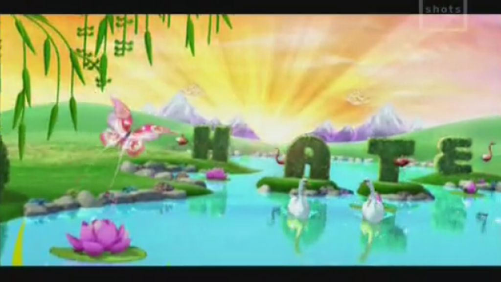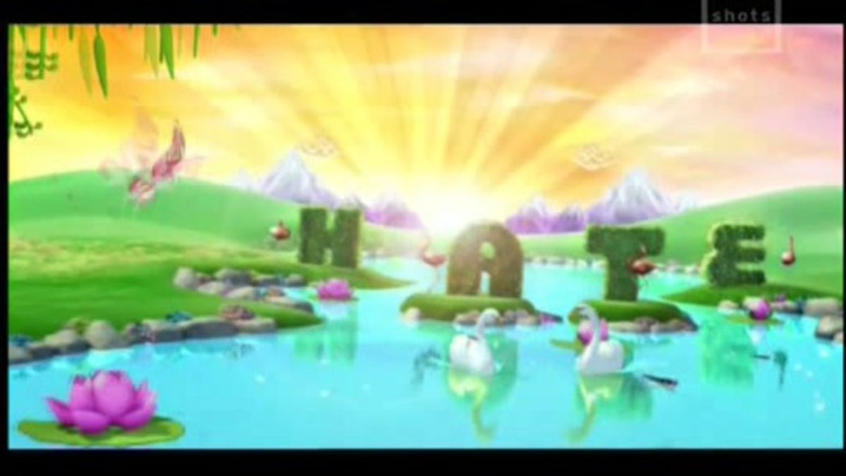 This is a nice little colour-saturated animation to promote Honda's new diesel engine. It has rainbows, lily ponds, bunnies in cute ear-muffs, and assorted other fluffy creatures in a rolling green landscape. When a fleet of noisy dirty machines sputter by, leaving trails of black smoke behind them, the inhabitants of this perky land put down the offending engines one by one. Then they unveil a shiny new incarnation, which makes no more than a delicate fluttering sound. Honda: The Power Of Dreams.