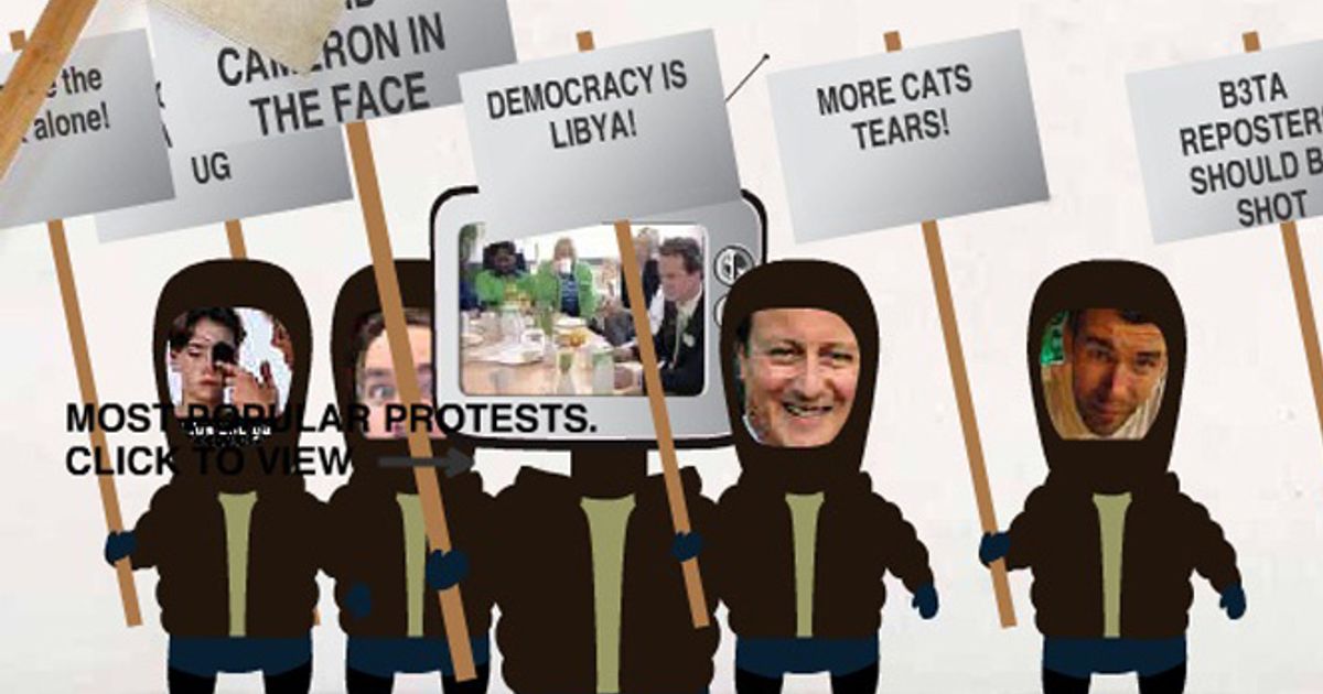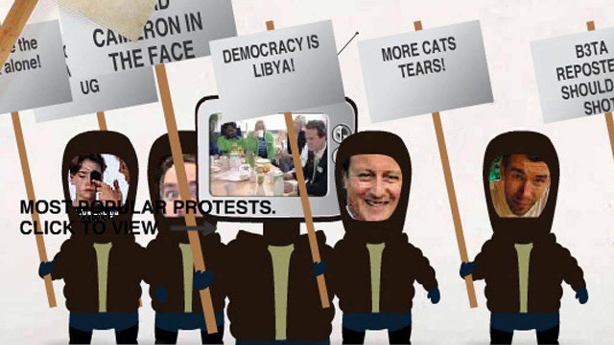 Feeling inspired by the spate of protests happening across Africa and the Middle East? Well, now you can join in at faceprotest.com. The team at London agency Albion – who also conjured up the Slapometer in the UK elections – have launched the online protest portal where you can upload your face or a YouTube video to a mini-protester and pledge your support, or create an entirely new protest. Topics so far include ‘Democracy in Libya’, ‘Pro Kicking David Cameron in the Face’ and, er, ‘More Cat Tears’.