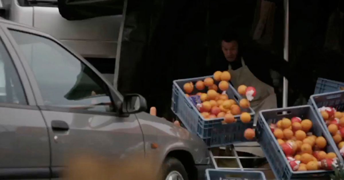 Onlookers gasp as she smashes and crashes into nearby parked cars, motorbikes and other objects in a real life version of the brilliant TNT More Drama execution before a banner is revealed warning of bad drivers and encouraging investment in insurance.