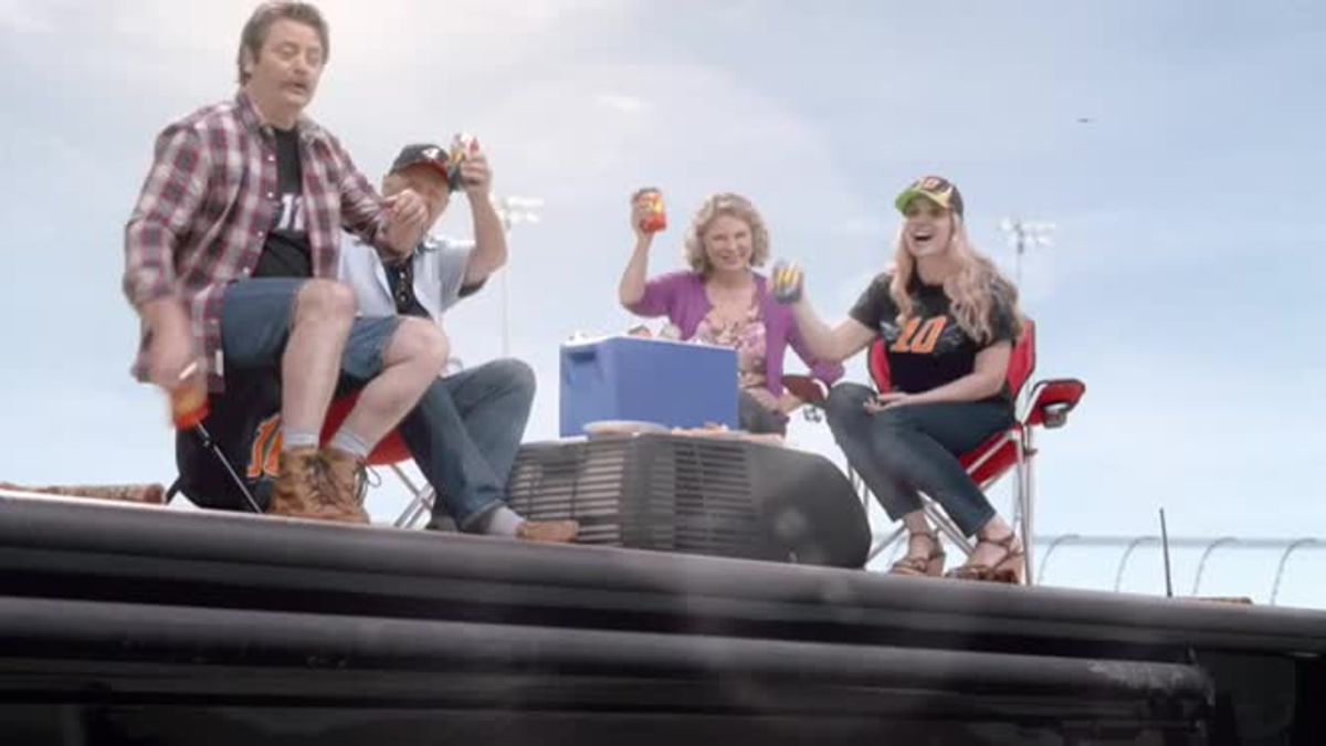 Parks and Recreation star Nick Offerman fronts this Super Bowl piece from NBC; which sees the actor break out in song in honour of NASCAR, one of the most watched motor sports globally.