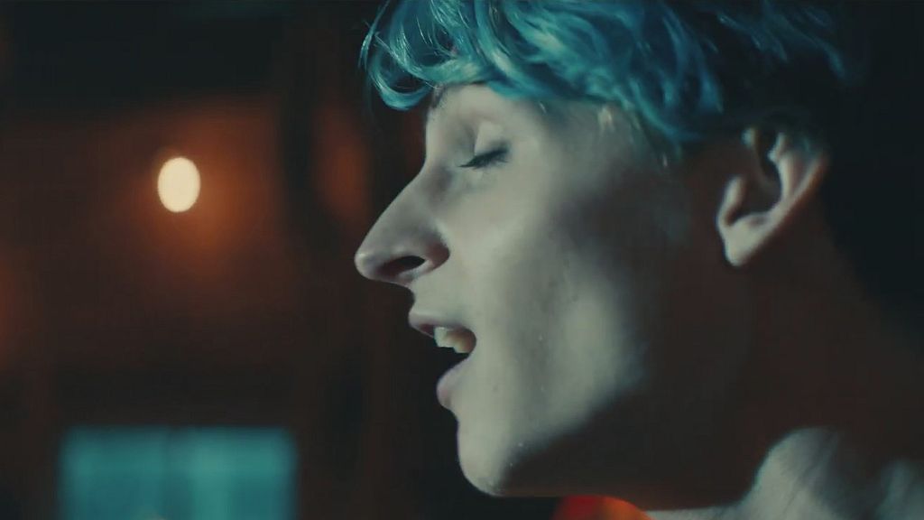 The lead singer enjoys a miraculous metamorphosis from zero to hero thanks to a spot of blue hair dye.