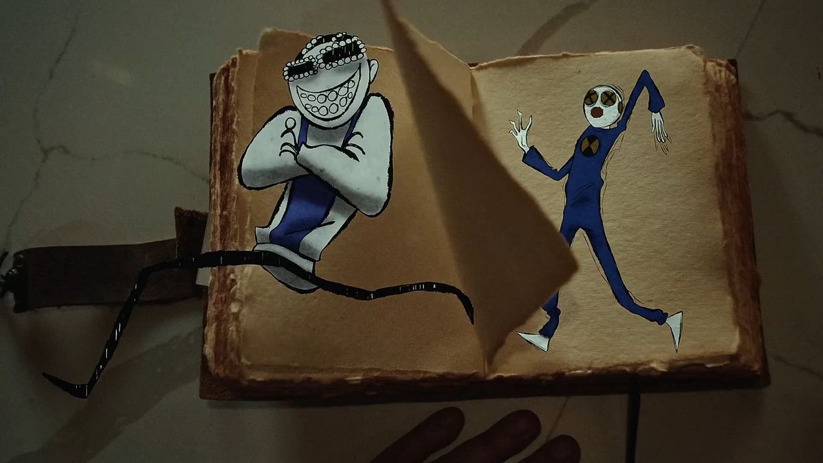Directed by the artist’s own creative studio AWGE through ProdCo, the film opens with a poetic, storybook-style narration as Burton falls asleep over his sketchbook in a bar.