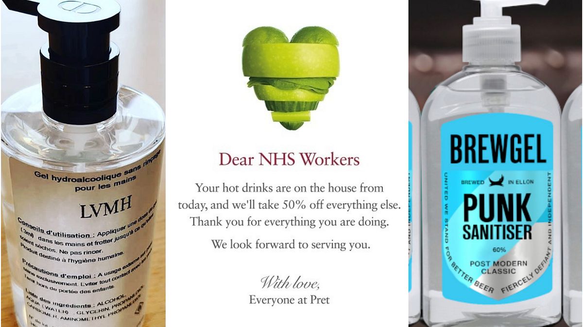 In France, the chairman and chief executive of luxury goods retailer LVMH, Bernard Arnault, pledged last Saturday that his company would use its own facilities to manufacture hand sanitiser and, by Monday, that's exactly what it had done. The sanitiser, contained in a repurposed Christian Dior bottle, is being delivered to French health authorities and hospitals, free of charge.