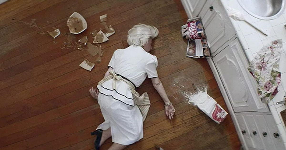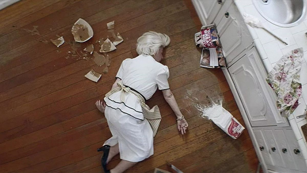The film opens on a dramatic aerial shot of Mrs. Patterson laying seemingly dead on her kitchen floor, mixing bowl splattered next to her, contents dripping from the counter. Dael, used an anamophoric lens to create the illusion of each scene looking like a still photograph throughout the entire short film. This effect adds to the artistry of telling the story and also supports the timing and tone of the film itself.