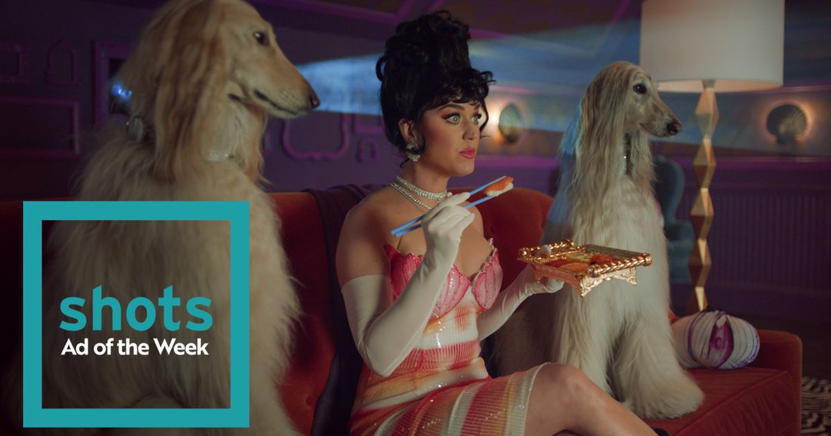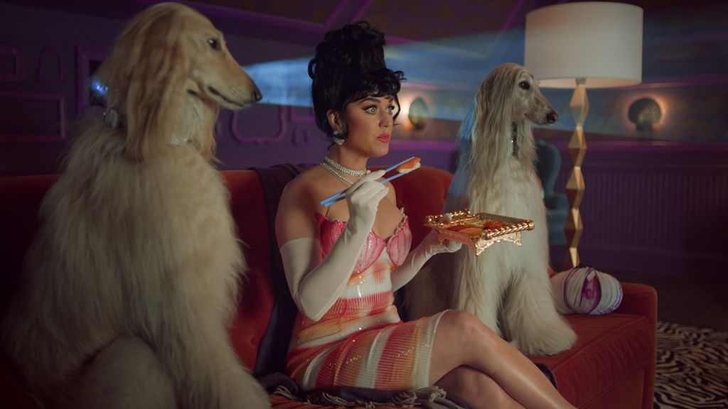 Starring Katy Perry, Did Somebody Say sees a foody courier deliver some tasty treats to a supersized dollhouse, resplendent with elaborate costumes, piano playing puppets and well-groomed doggos.