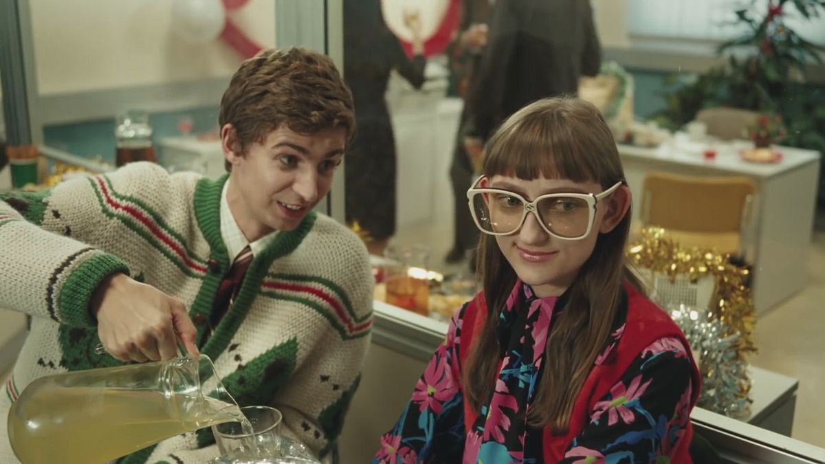 In an overwhelmingly charming, self-knowing spot for the fashion label, a timewarped office full of fashionistas has one heck of a Christmas party.
