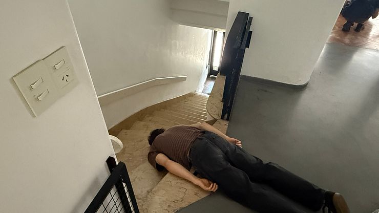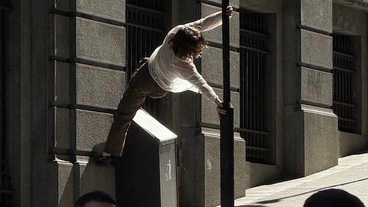 McCreary’s work is environmental so we wanted him to help guide locations that inspired his style of movement. It was really cool to watch him interact with things on the street that would otherwise go unnoticed. It could be a shadow or a piece of scaffold but he's always workshopping. In-between takes you could find him dragging himself along by the scissor lift which could have very well been the whole film. Because this was a spring campaign we shot in Buenos Aires which has long daylight hours and beautiful light. We shot within a two block radius of the downtown, mostly because that was the best way to not get hit by cars.