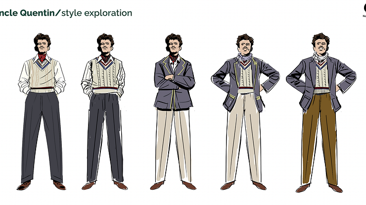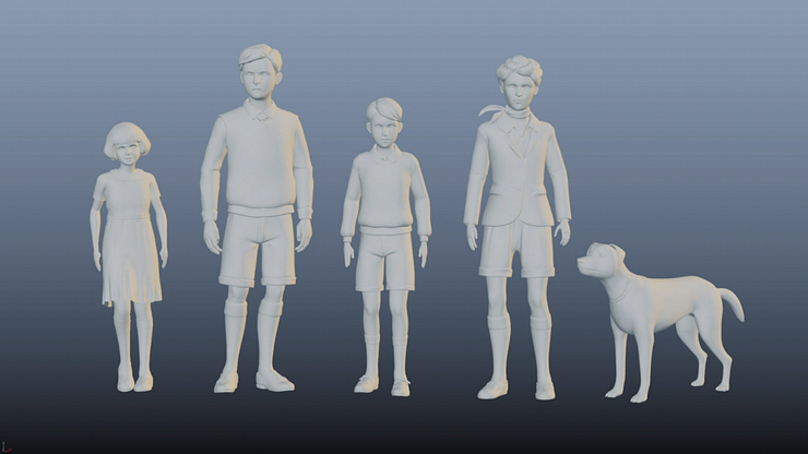 Above: Character designs for Uncle Quentin, Aunt Fanny, and The Famous Five.