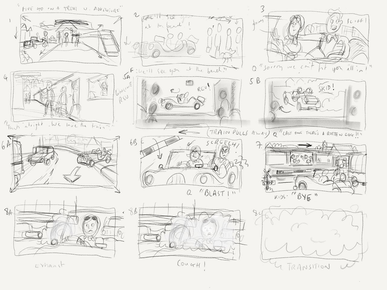 Above: A story board for Five Get There First.