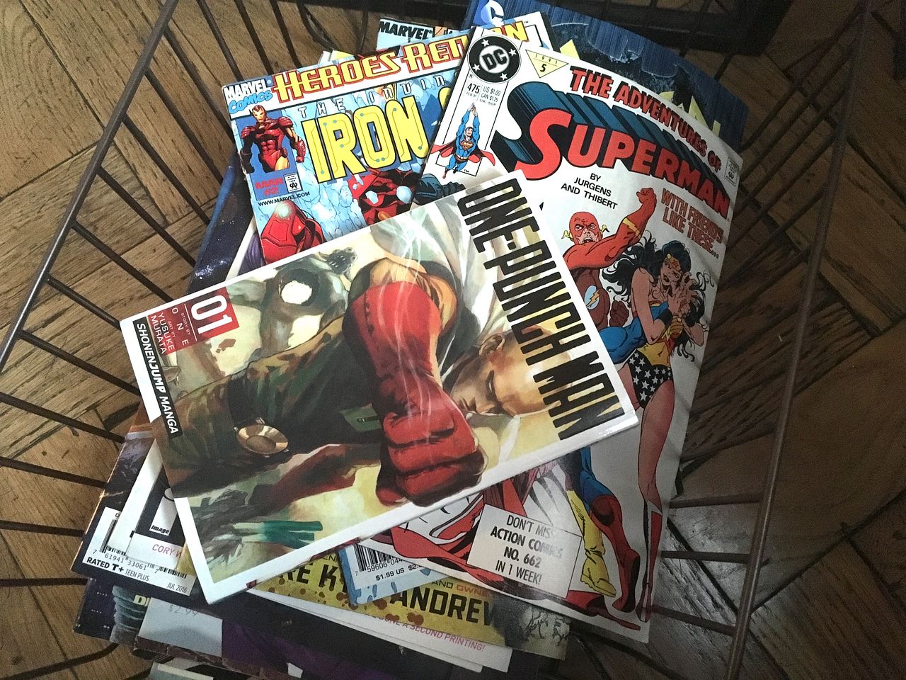 You’ll find: One Punch Man (bloody hilarious), Gotham By Gaslight (Batman hunts Jack the Ripper) and Death of Superman (totally bonkers), along with weird and wonderfully random titles I’ve found in trips to Forbidden Planet.