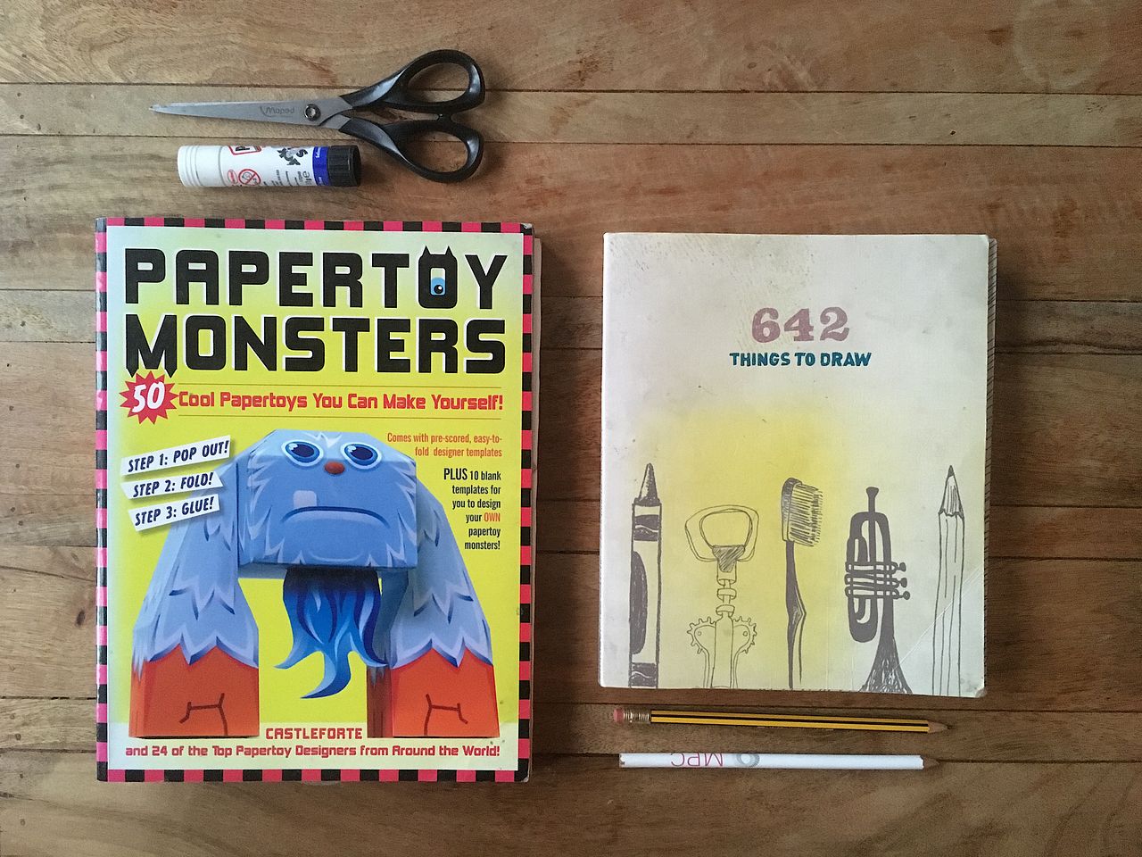 What I do is time-consuming and let’s face it, probably a little bit boring for most people to sit through and watch. So I like to offer my clients creative ways to pass the time. So far there’s ‘642 Things To Draw’ and the origami-style ‘Papertoy Monsters’. I don’t think people notice, but in a pot on the table is everything needed to get stuck in - scissors, pencils, erasers, tape and glue.