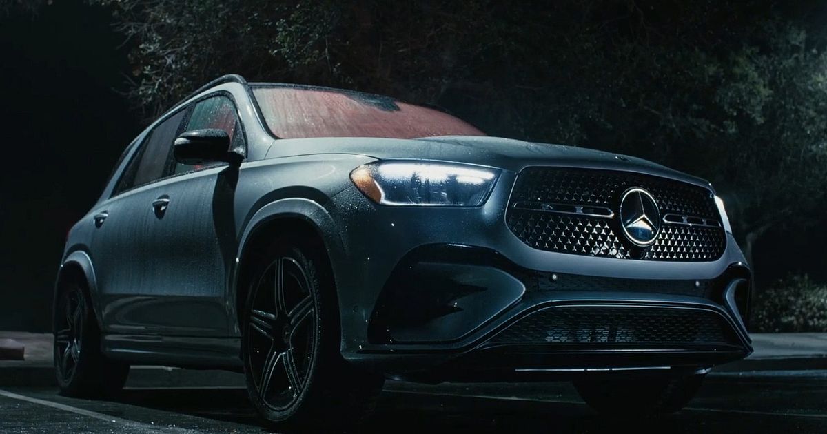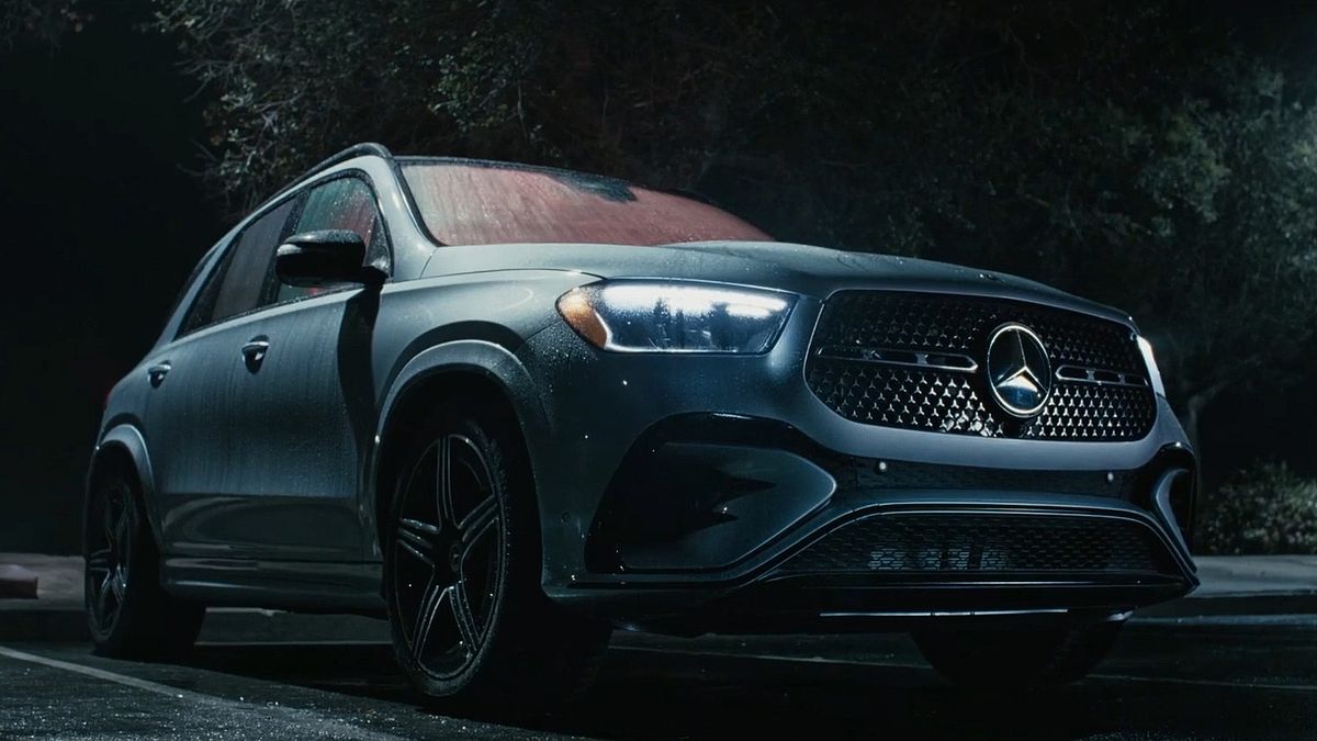 The film opens on a rain-slicked parking lot at night, where a couple sits together in their GLE, the world outside still and silent. The man selects a song titled Bliss on the touchscreen and turns to his wife with a small smile, a rare, stolen moment of peace.
