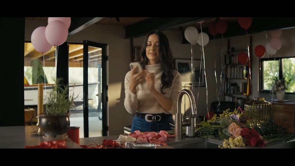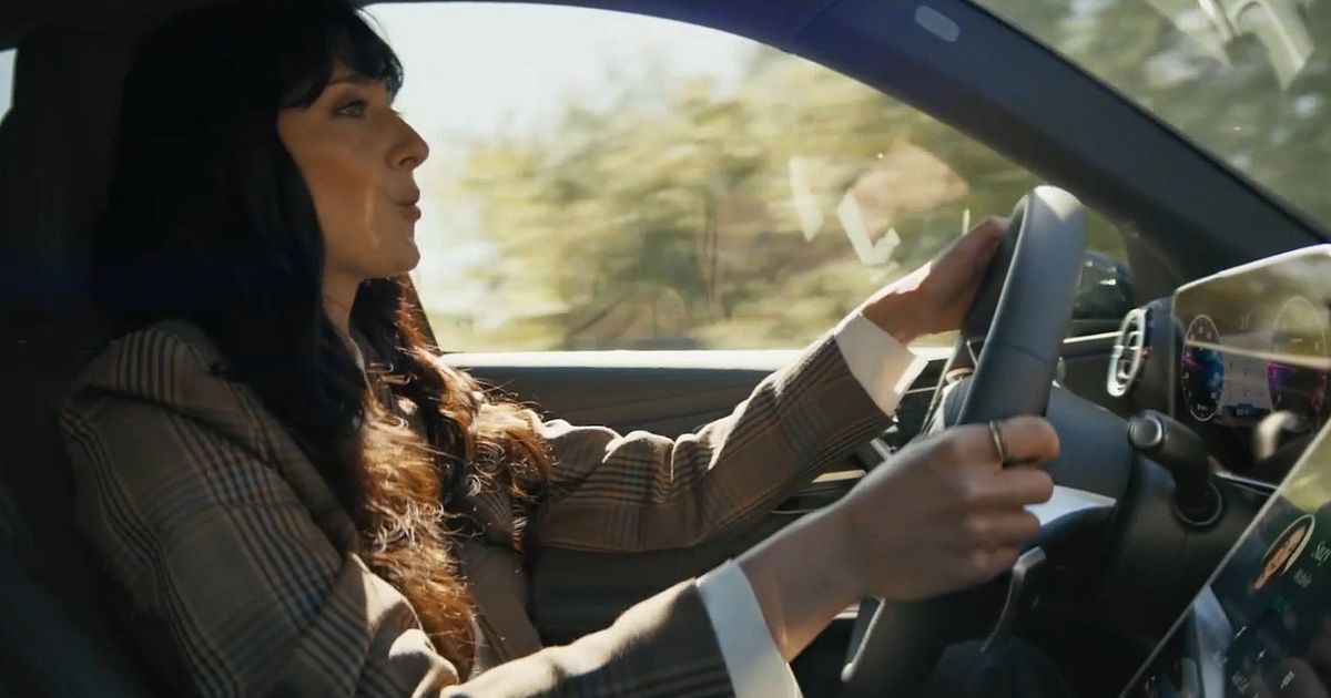 The commercial opens with a woman pulling out of a downtown parking garage, asking her Mercedes to call her sister. We cut to the sister at home - surrounded by balloons and birthday decorations - who answers excitedly, asking if she is close by. With an apologetic tone, the driver insists she just can't make it this weekend.