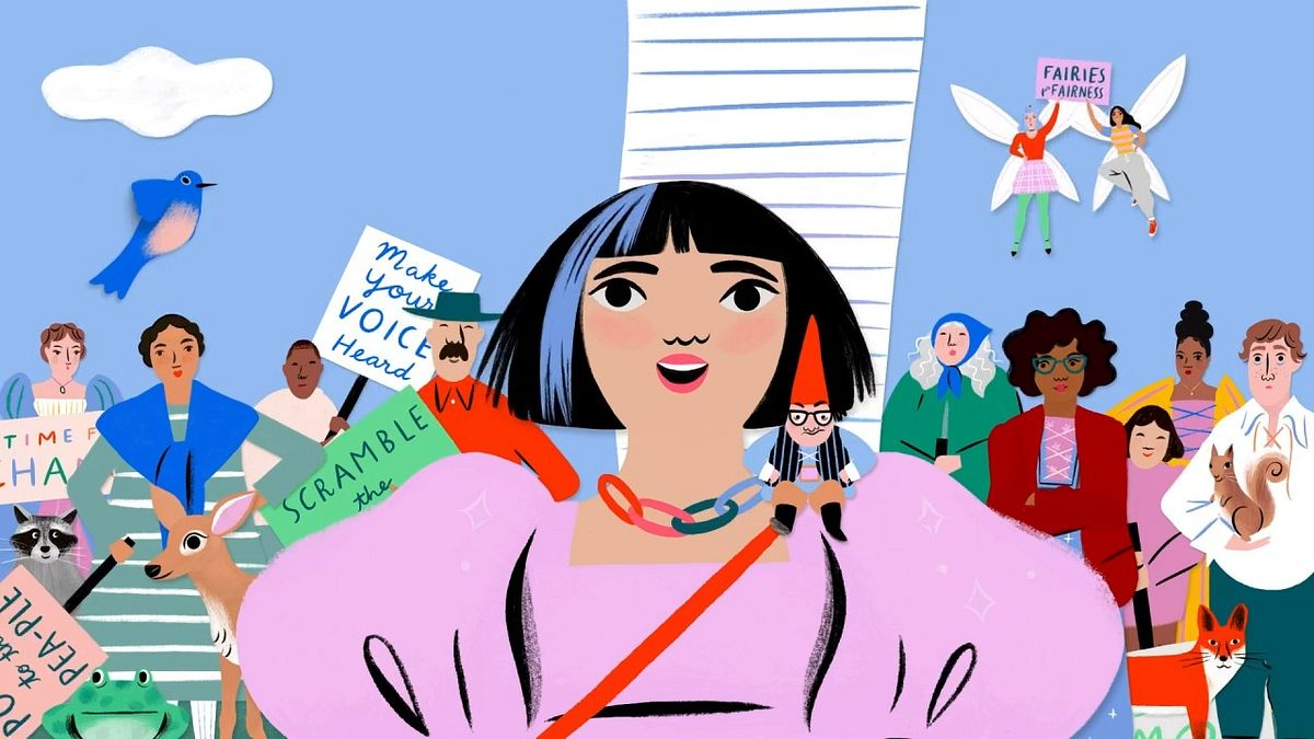 In the story, a girl named Princess questions the absurd “Official Real Princess Test” and seeks a fair and democratic way to choose a leader. She rallies the townsfolk with her “Pea-tition” and becomes the first elected leader, transforming the land’s traditions.