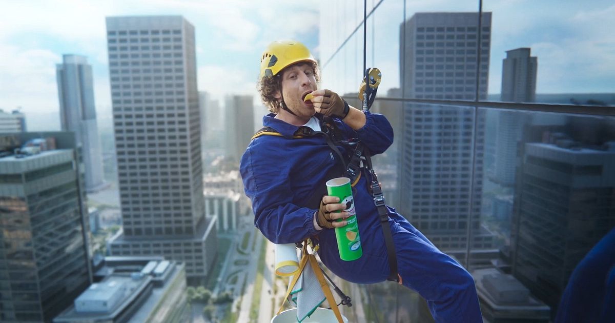 The hero film, directed by triple Cannes Grand Prix-winning collective Traktor, follows two acrobatic window cleaners who go to extraordinary lengths to pass a tube of Pringles while suspended halfway up a skyscraper. As they swing playfully across the building, office workers inside look on in surprise, while the iconic 80s track St Elmo’s Fire (Man in Motion) by John Parr powers the action.