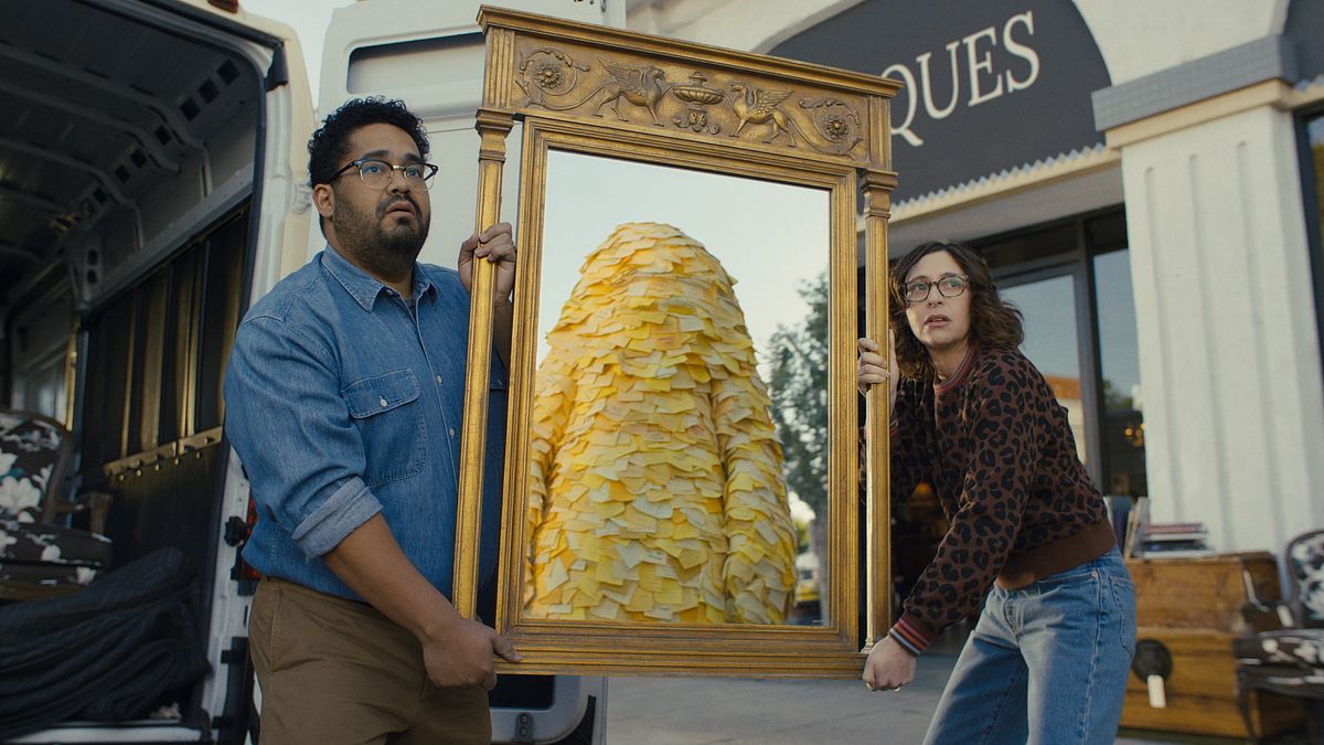 The hero :30 film, Nelson’s Odds & Ends, finds two shop owners navigating a delivery of antique furniture while the monster looms nearby. The creature relentlessly decorates the shop with yellow post-its demanding: “Do Inventory,” “Pay Electric,” and “Hire Someone.” Amidst a literal flurry of tasks, the shop owner finds clarity in a single note: “Get a Quote.” It’s a moment of relief that highlights Progressive’s ability to simplify an otherwise daunting responsibility.