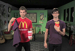Their work has parodied local TV commercials and their YouTube content has vaulted them to the top of the viral advertising world, garnering more than 125 million video views. Named the "Commercial Kings" in their IFC television series, Rhett & Link rank at the top of the viral world, with branded content videos such as "Epic Rap Battle" for Dentyne (4 million views) and "In The 80s" (2 million views). "When we got a call from Moroch saying they wanted to take our viral video 'T-shirt War' (8 million views) and turn it into a national TV commercial for McDonald's and Coke, we knew we were crossing over," says Link, who is one half of the directing duo. "We created and starred in 'T-shirt Wars 2', and it was pretty thrilling."