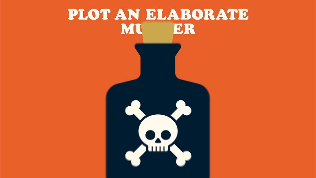As the animations unfold, these scenarios reveal surprising twists; the pointy hat turns out to be a traffic cone on a busy road, while the skull and crossbones morph into chicken drumsticks, suggesting that the murder can be plotted while roasting a chicken. Further juxtapositions include headlines such as 'Dismember a neighbor while the kids do homework', and 'Start a satanic cult while waiting for your pap test'.