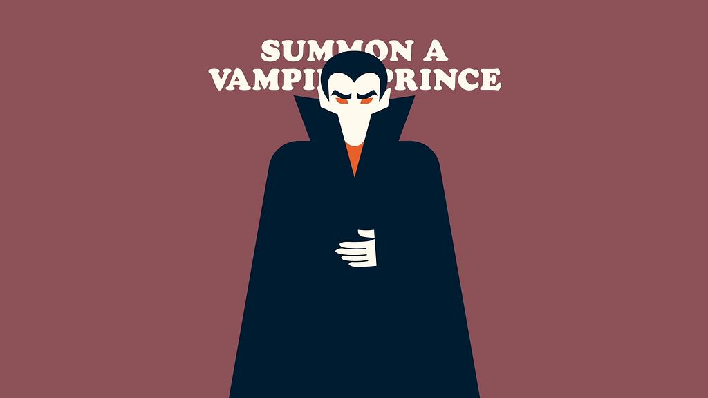 The series of five spots begin with intriguing propositions. In one, the line 'Plot an elaborate murder…' appears alongside a bottle of poison and skull. Another reads 'Start a witch coven…', paired with a pointy hat silhouetted against the moonlight.
