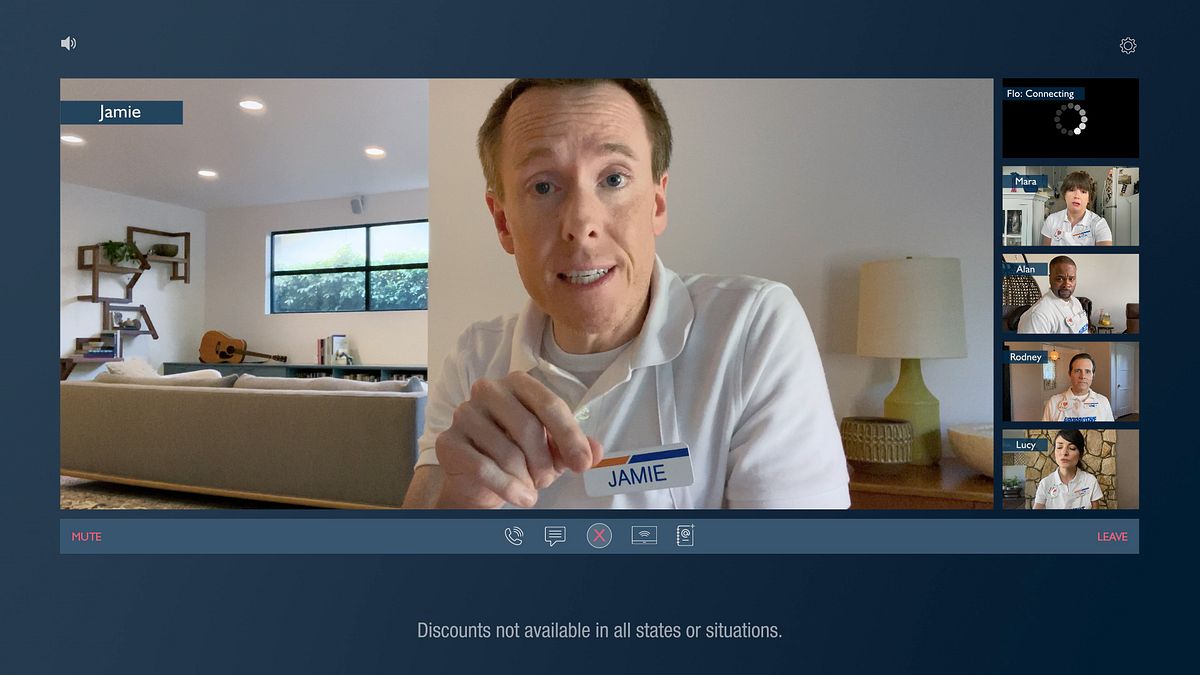 Jamie, Mara, Flo and the rest of the Progressive team recently turned up for a Zoom meeting, as the insurance company debuted its first spot in the lockdown era.