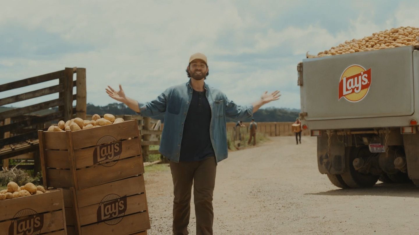 A girl harvests a potato in Lay's big game teaser.