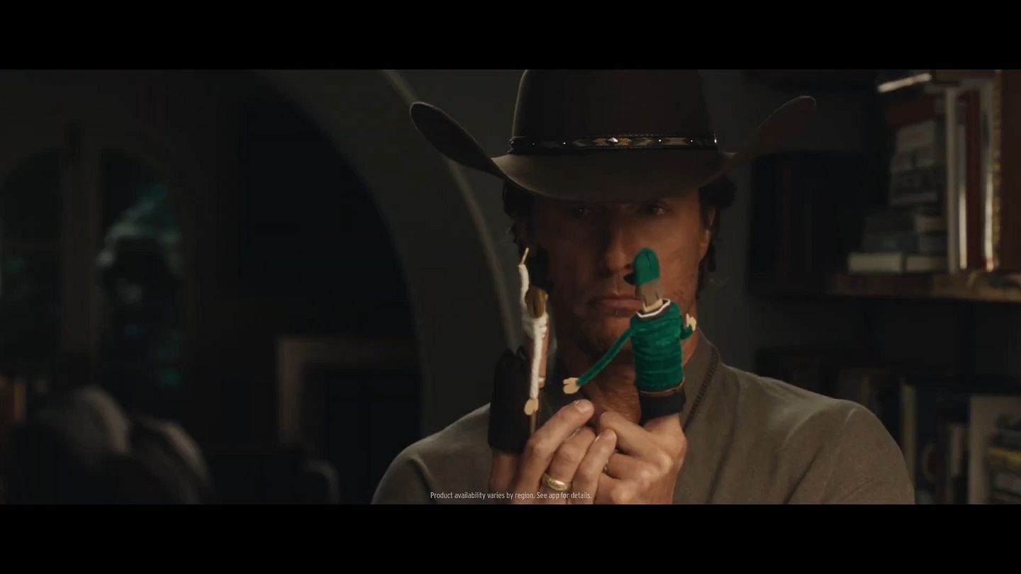Matthew McConaughey plays with finger puppets of him and Bradley Cooper in a big game teaser for Uber Eats.