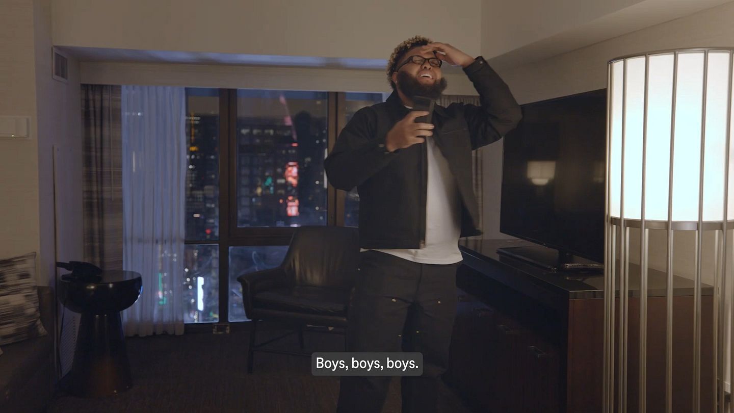 T-Mobile's Chief Switching Officer Druski practices rehearses a phone call.